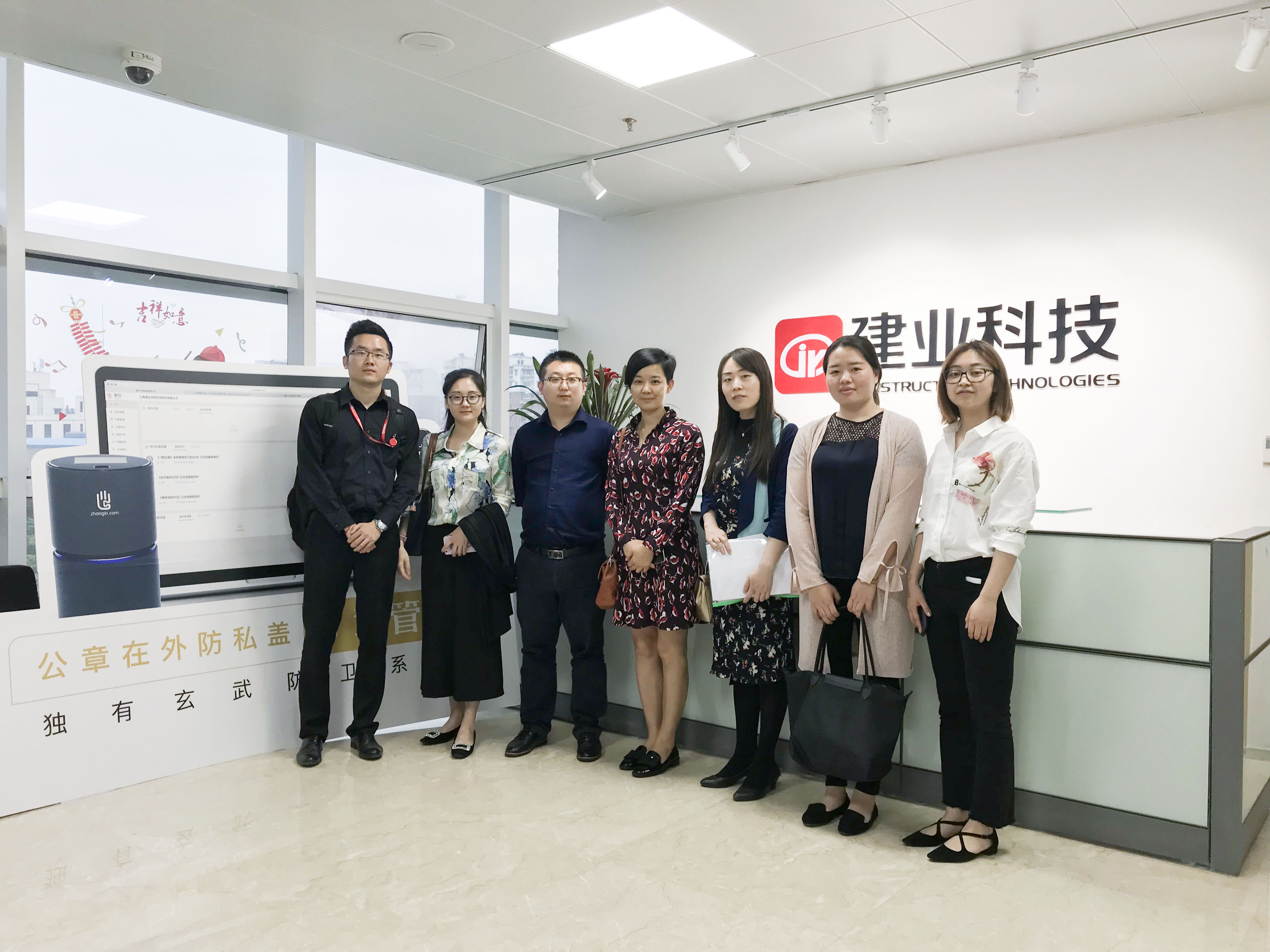 5月17日,中骏置业控股有限公司(股票代码:01966.HK)的秘书处总监刘媚一行五人莅临上海建业信息科技股份有限公司(股票代码:838581)考察,双方就印章管理方面的信息化技术做了深入交流,建业科技营销中心总经理杜林、首席技术官潘建国、产品总监张成龙生陪同考察。