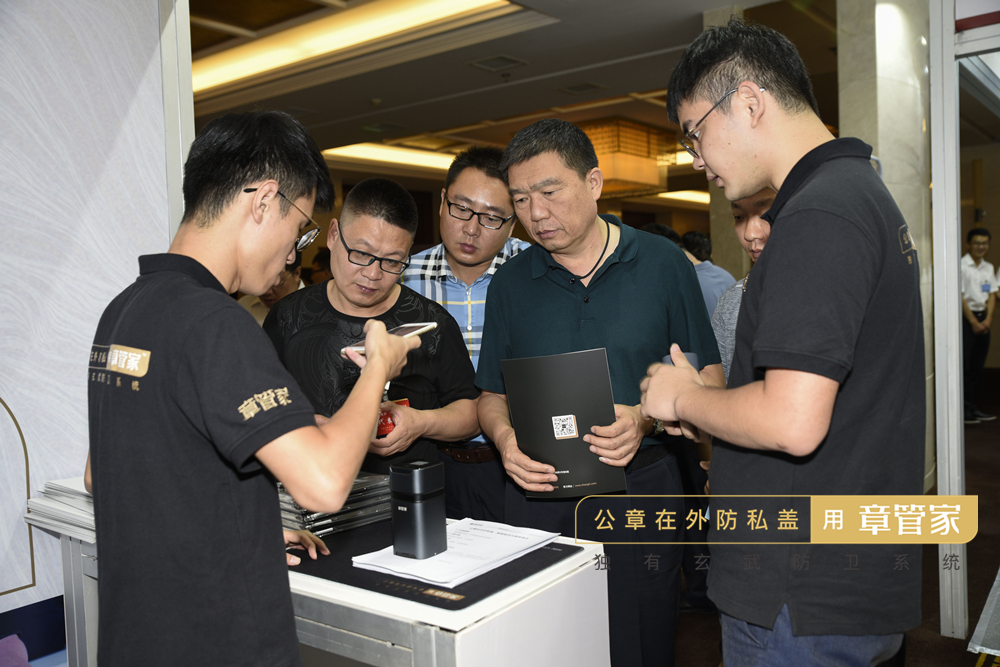 章管家将企业实体印章装入智能硬件,使其成为可被电脑、手机APP操作和管理的智能印章。章管家独创玄武防卫系统,包含自动盖章、远程盖章、一章一码等功能。确保企业用章规范,一定是申请的人、用申请的章、盖申请的文件。展会上,原交通部部长、原重庆市委书记黄镇东,对章管家这一企业智能化建设创新型产品,表示极大认可和高度赞赏。