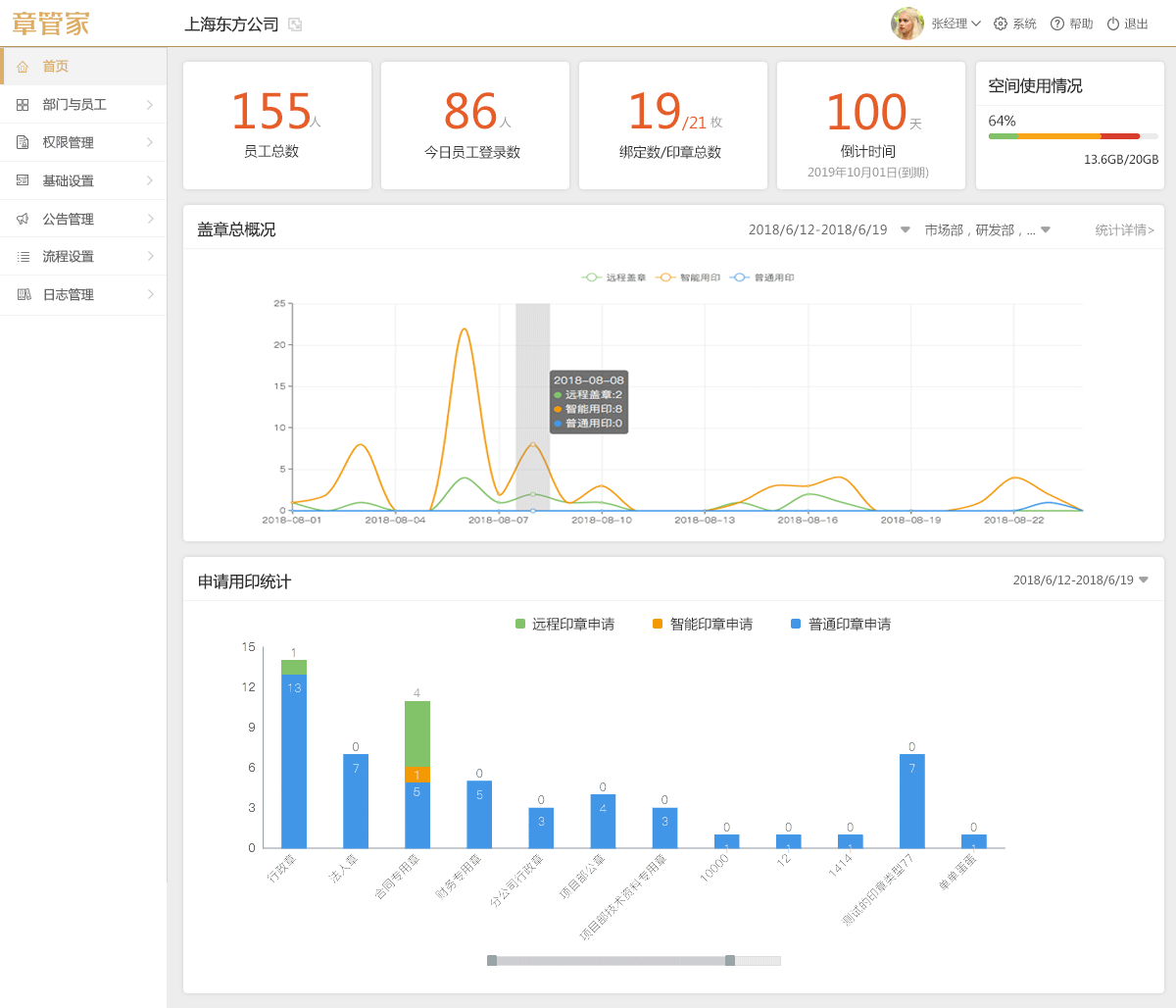 公章在外防私盖,用章管家。章管家以管理平台和智能印章,既能为集团公司提供线上掌控全国各地印章动态,可进行数据分析和决策支持;也能在实际使用中,管住盖章关键一步,只让申请的章盖在申请的文件上。其独有玄武防卫系统包含远程盖章、一盖一码、章面隐形、自动盖章等功能,作为整体解决方案良好应对了宜春市交通公路工程建设有限公司这类公司的管理困扰。