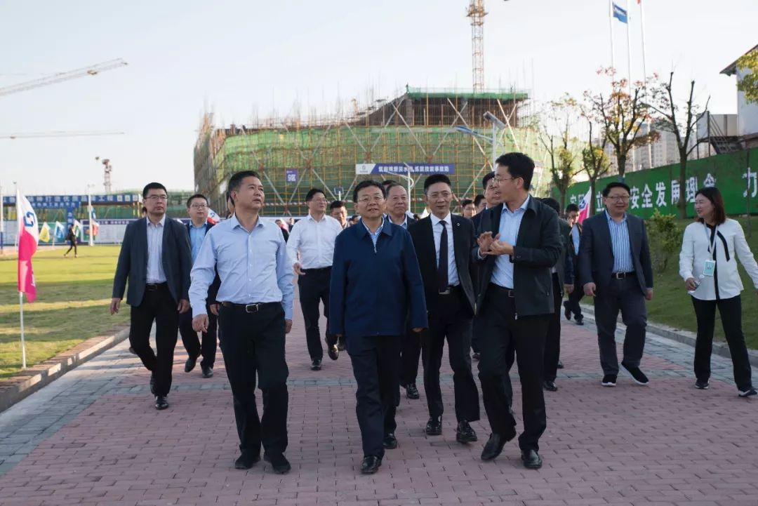10月30日下午,江西省委常委、副省长刘强在上饶市委书记马承祖、市长谢来发陪同下,来到中国(上饶)建筑科技产业园调研指导工作。江西省住建厅党组成员、总工程师章雪儿、上饶市副市长李高兴、上饶市副市长兼上饶高铁经济试验区党工委第一书记王万征、上饶市政府秘书长郑彦芳、上饶市政府副秘书长王云、上饶高铁经济试验区党工委书记辛鲁冀、管委会主任陈德清等领导陪同调研。由宏盛建业投资集团、中国(上饶)建筑科技产业园有限公司、上海建业信息科技股份有限公司董事长周金虎陪同调研,就园区规划及建设情况、及在数字化运用方面的探索创新成果进行汇报。