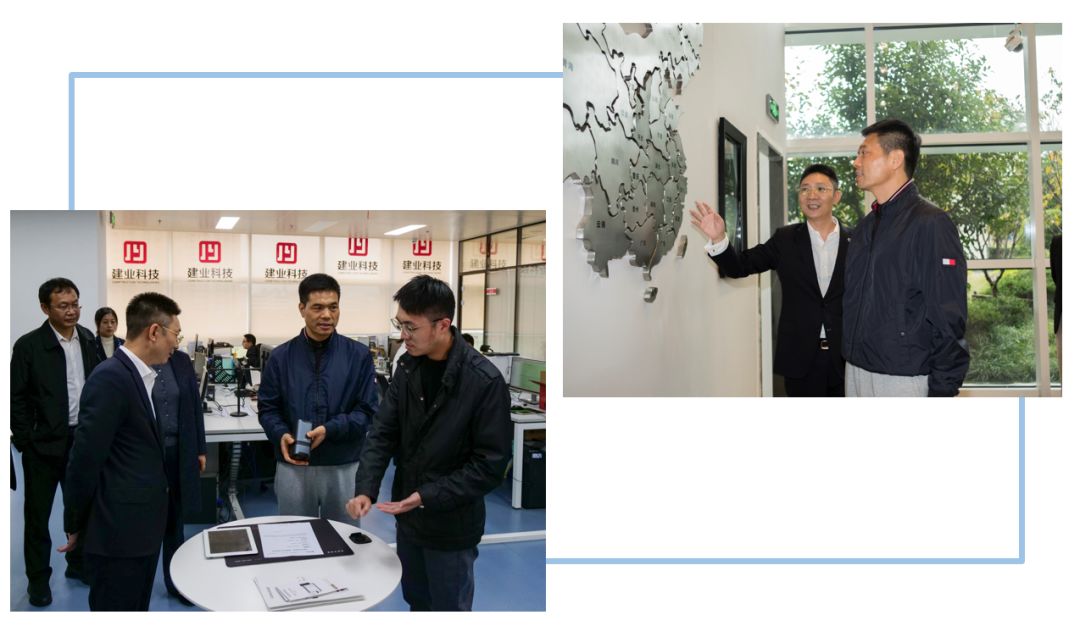 11月12日下午,中共上饶市副书记、市长谢来发来到上海建业信息科技股份有限公司考察调研。上饶市政府秘书长郑彦芳等随同调研。上海建业信息科技股份有限公司董事长周金虎等领导陪同。